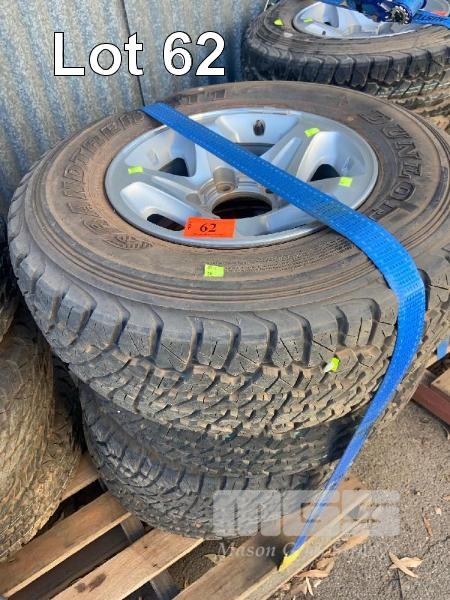 4 x TOYOTA 79 SERIES LANDCRUISER ALLOY RIMS, 5 STUD & TYRES, DUNLOP GRAND TREK ATI SIZE 265/70R16 115 R LT, WITH WHEEL NUTS