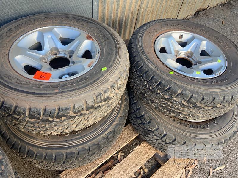 4 x TOYOTA 79 SERIES LANDCRUISER ALLOY RIMS, 5 STUD & TYRES, DUNLOP GRAND TREK ATI SIZE 265/70R16 115 R LT, WITH WHEEL NUTS