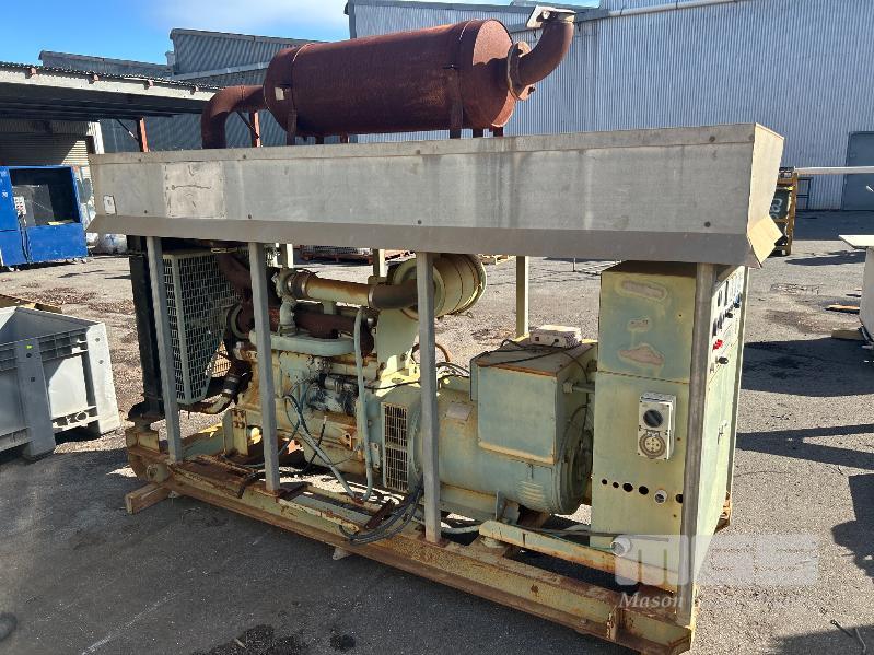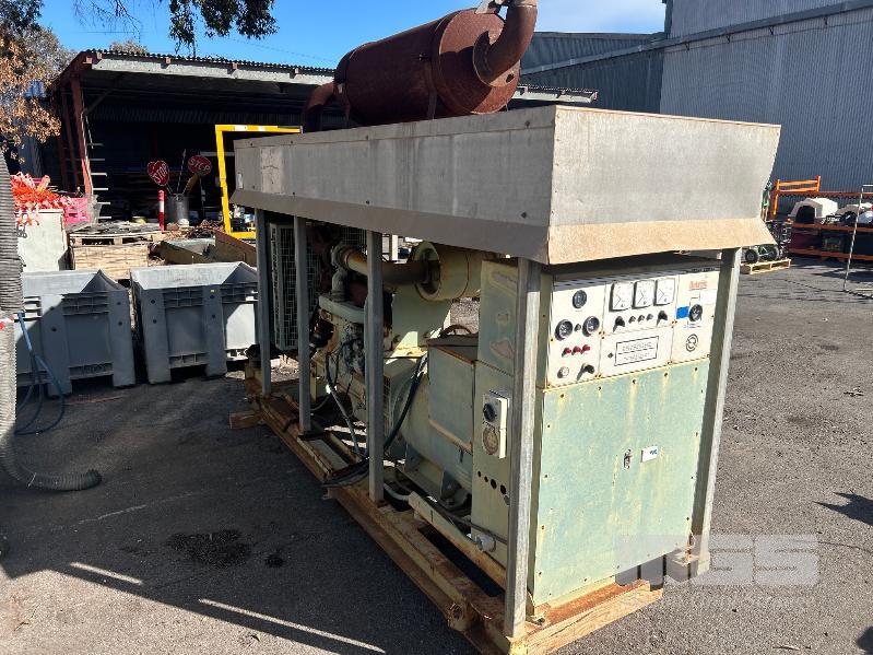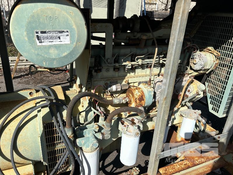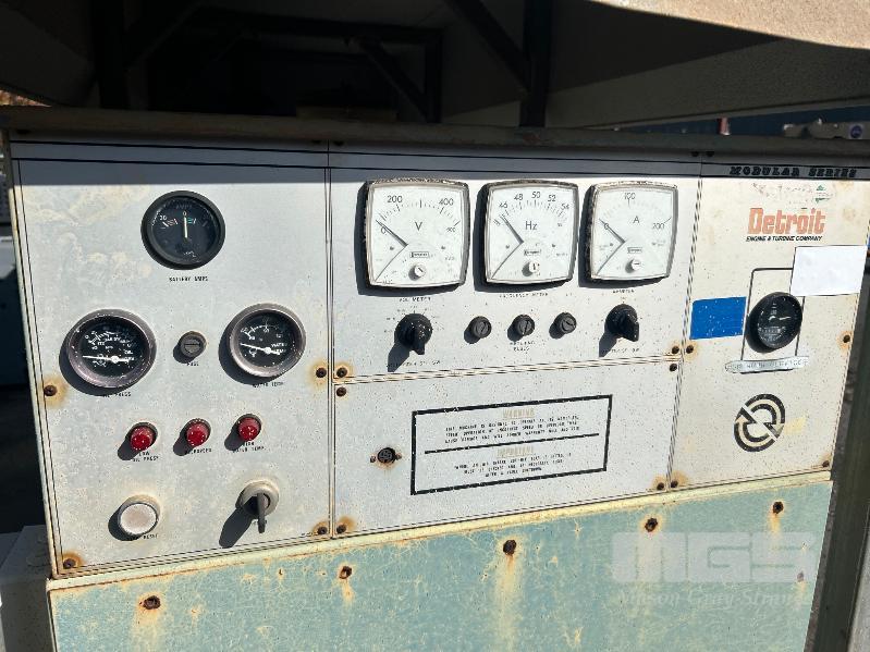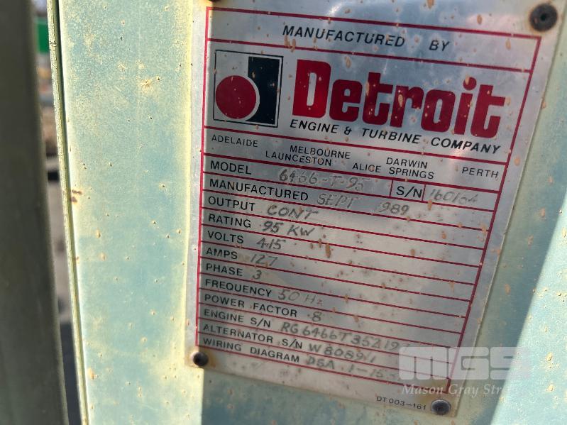 GENSET, DETROIT MOD: 6466-T-95 DOM: 1989 RATING: 95kw 415V, 127 AMP POWERED BY JOHN DEERE 6 CYLINDER TURBO DIESEL ENGINE MOD: 6466TF-00 HOURS: 19,157 SHOWING SKID MOUNTED EX MILITARY