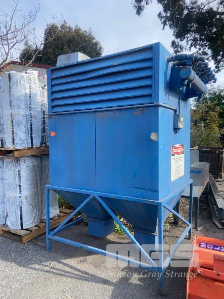 DUST EXTRACTION UNIT FITTED WITH 12 x FILTER UNITS, VERTICALLY MOUNTED, BOTTOM OUTFEED CHUTE FOR FILTRATES 1700 x 1480 x 2580mm (H)