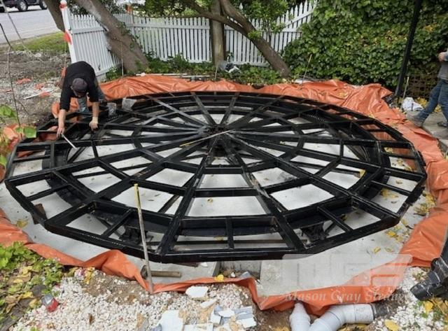 STEEL CAR TURNTABLE WITH TRACK CASTORS, ELECTRIC MOTOR & REDUCTION DRIVE GEARBOX 415V COMPRISING FRAME, 8 PIECES PLATE & TRACK NEW IN STEEL CRATE