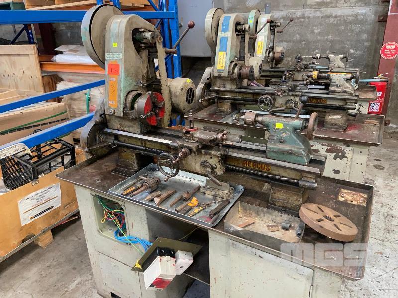 METAL WORKING LATHE, HERCUS 9" MOD: CR BED LENGTH: 750mm BETWEEN CENTRES: 550mm SWING: 240mm FEED THROUGH: 20mm WITH 2 x 4 JAW CHUCKS, 150mm LIVE CENTRE, CHUCK & TOOL HOLDERS 415V