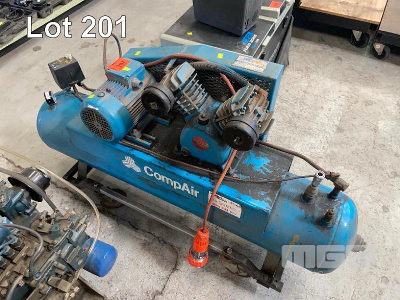 COMPRESSOR, COMPAIR SWAN MOD: SVU-202 MAX OPERATING PRESSURE: 140PSI 415V, 22kw, 3 PHASE MOUNTED ON STEEL FRAME ON CASTORS