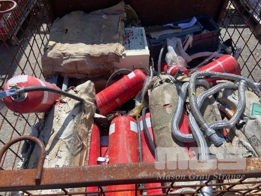 STILLAGE & CONTENTS INCLUDING 20 x FIRE EXTINGUISHERS, CONTROL PANEL & PIPE FLANGES