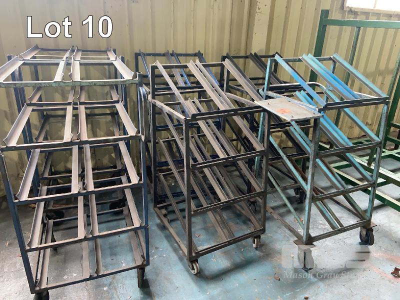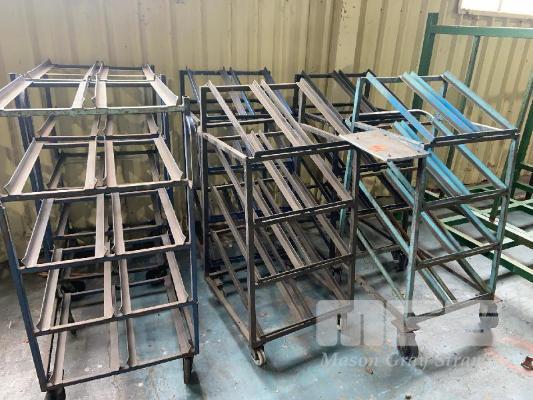 6 x MOBILE PARTS TROLLEYS, STEEL 1200 x 600 x 500mm 4 x INCLINEABLE 2 x HORIZONTAL