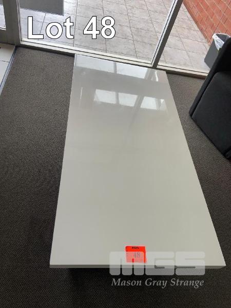 COFFEE TABLE WHITE, 1200 x 600mm WITH POT PLANT & SWIVEL STOOL