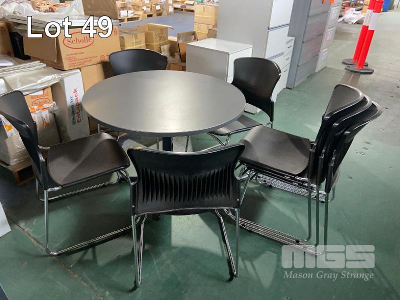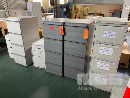 6 x FILING CABINETS TIMBER LAMINATE TABLE, 1100mm (D) 7 x STACKABLE CHAIRS