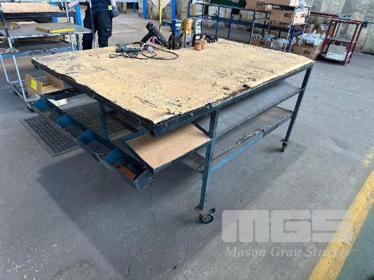 PAIR MOBILE WORK STATIONS, CASTOR WHEELS, 1800 x 1200mm