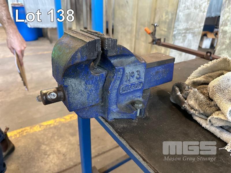 PNEUMATIC LEG ASSEMBLY WITH STEEL TUBE WORK BENCH, 3000 x 600mm + RECORD NO. 3 VICE