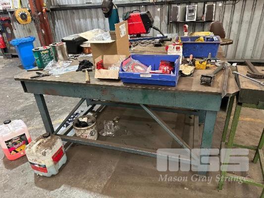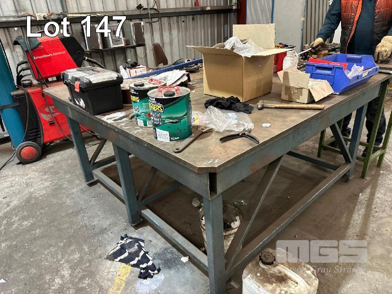 HEAVY DUTY WELDER BENCH, 1900 x 1900mm WITH 25mm PLATE TOP, ADJUSTABLE HEIGHT FEET