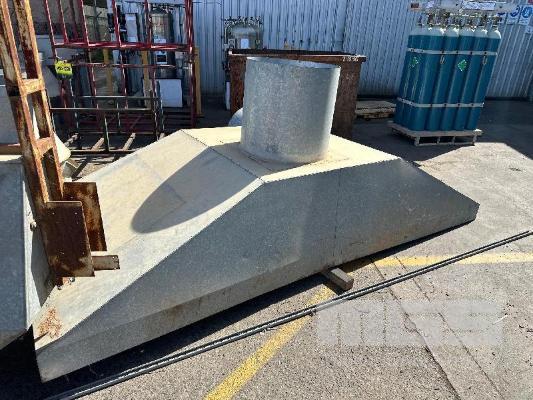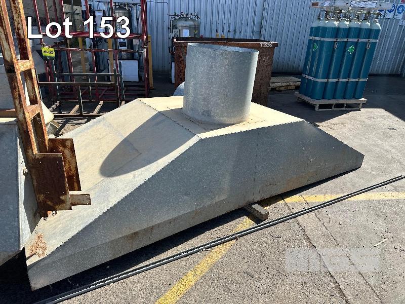 LARGE GALV EXHAUST CANOPY, 3.5m WITH ASSORTED DUCTING SECTIONS