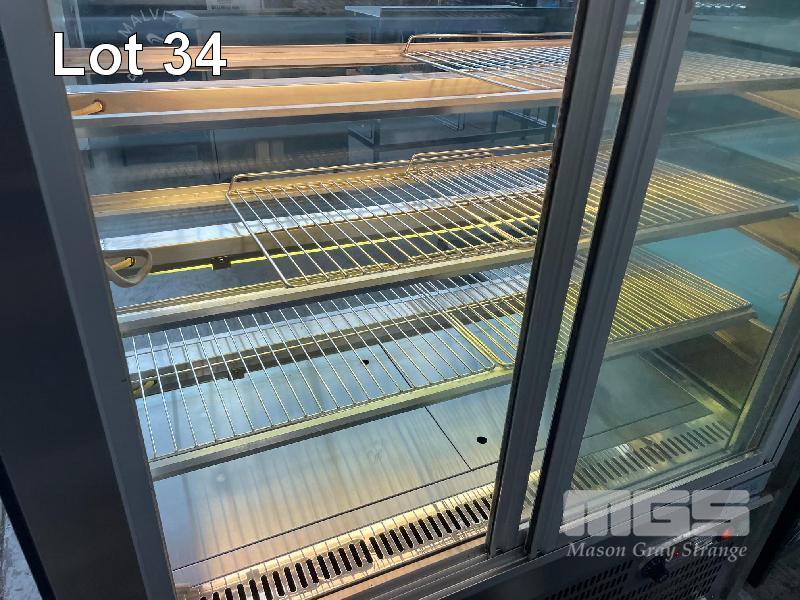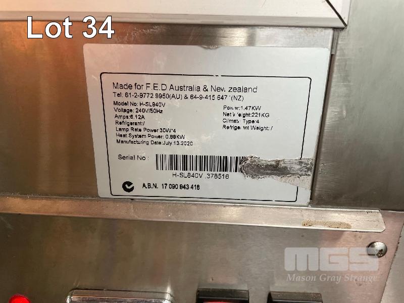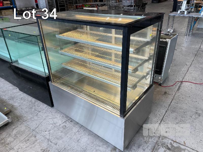 HEATED GLASS DISPLAY CABINET, FED 1175 x 730 x 1350mm (H) 3 TIER, SLIDING DOORS, ILLUMINATED 240V, 10 AMP