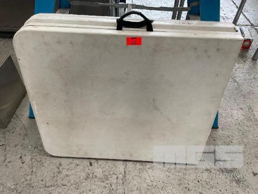 2 x BLOW MOULD TRESTLE TABLES, FOLD OUT
