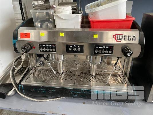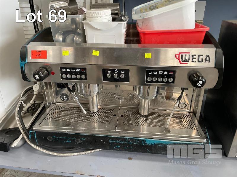 ESPRESSO MACHINE, WEGA 2 GROUP TWIN STEAMER 240VM, 10 AMP WIHT GLASS RINSE STATION