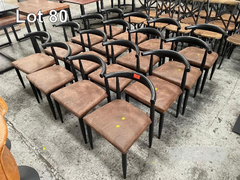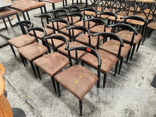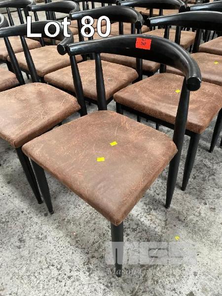 16 x DINING CHAIRS, BLACK STEEL FRAME, BROWN VINYL TOPS