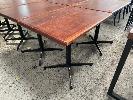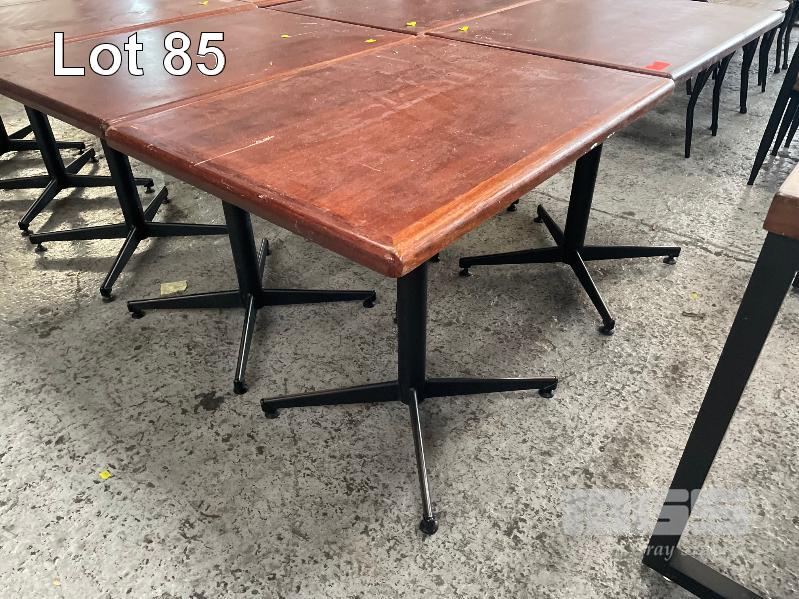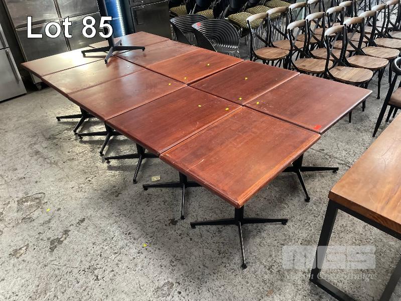 11 x TIMBER TOP CAFE TABLES, 800 x 600 x 720mm (H), BLACK STEEL PEDESTAL BASE, DARK STAIN SOLID TIMBER TOPS