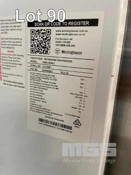FRIDGE/FREEZER, WESTINGHOUSE MOD: WBE5304SC 2 DOOR 529 LITRE CAPACITY