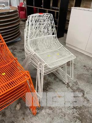 8 x STEEL CAFE ARROW CHAIRS, WHITE