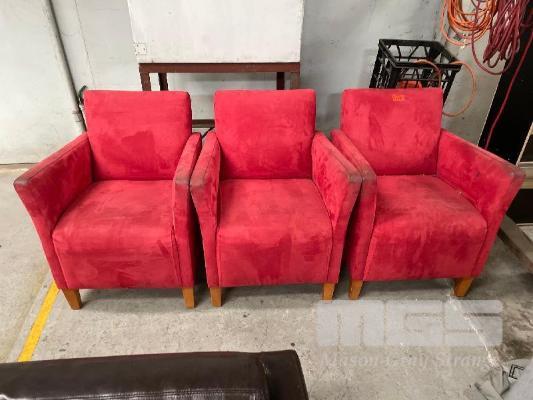 3 x VISITORS CHAIRS, RED FELT