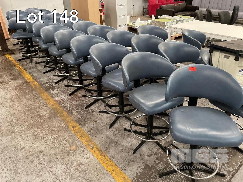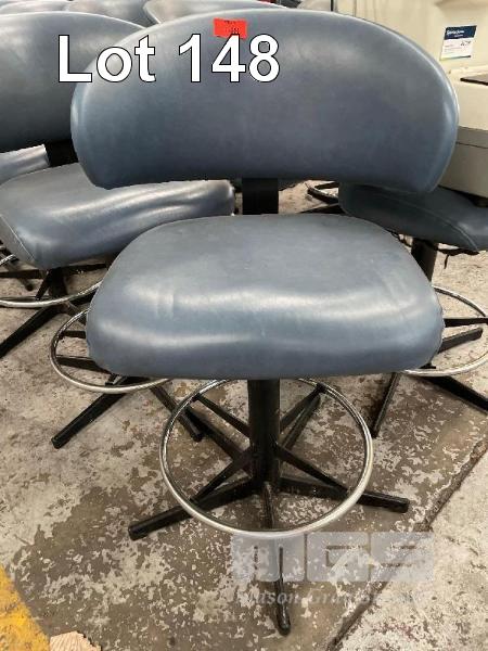 26 x BLUE VINYL BAR STOOLS, BLACK STEEL BASE, 600mm (H)