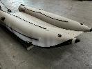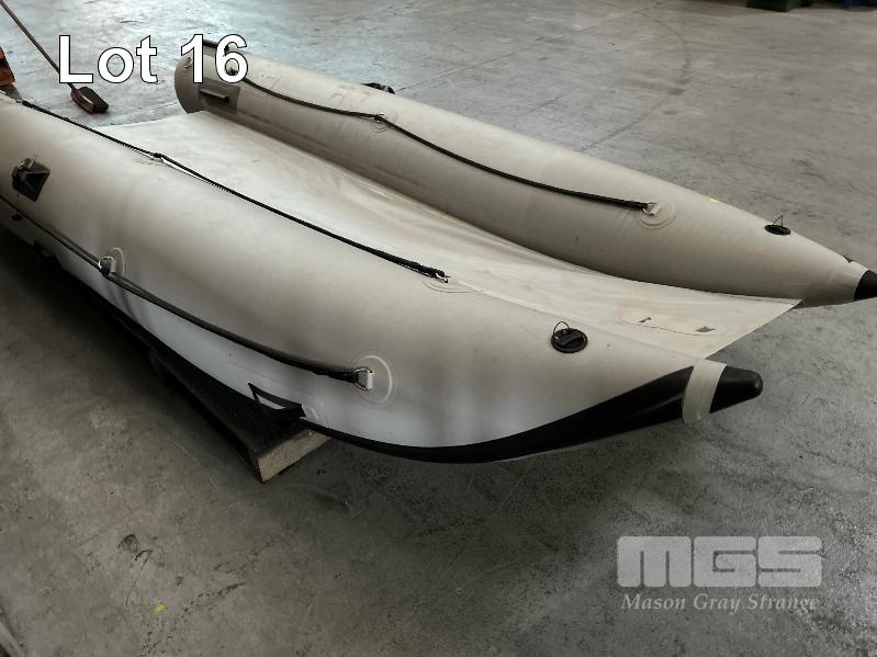 INFLATABLE BOAT, TAKACAT MOD: 370LXPVC LENGTH: 3.7m NOTE: HAS SLOW LEAK IN PONTOON, MISSING BACKBOARD, BRACE POLES & INFLATABLE BASE