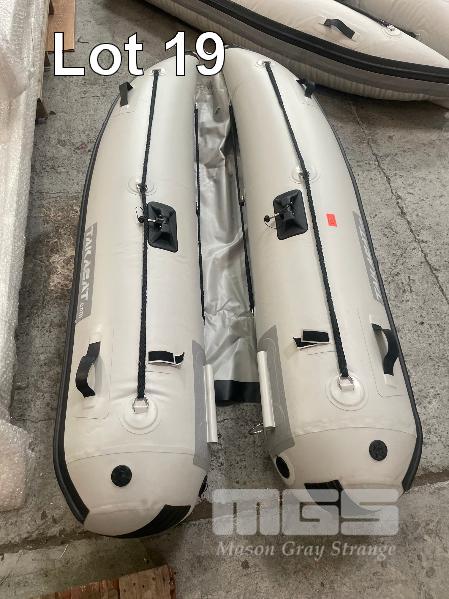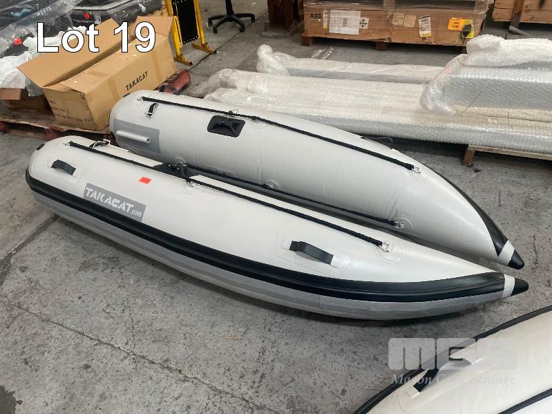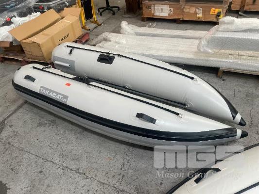 INFLATABLE BOAT, TAKACAT LENGTH: 2.4m NOTE: HAS SLOW LEAK IN PONTOON, NO BACKBOARD, BRACE POLES OR INFLATABLE BASE