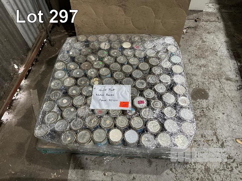 80 (APPROX) x CANS ASSORTED HOUSE PAINTS WATER BASE APPROX 80 LTR TOTAL .