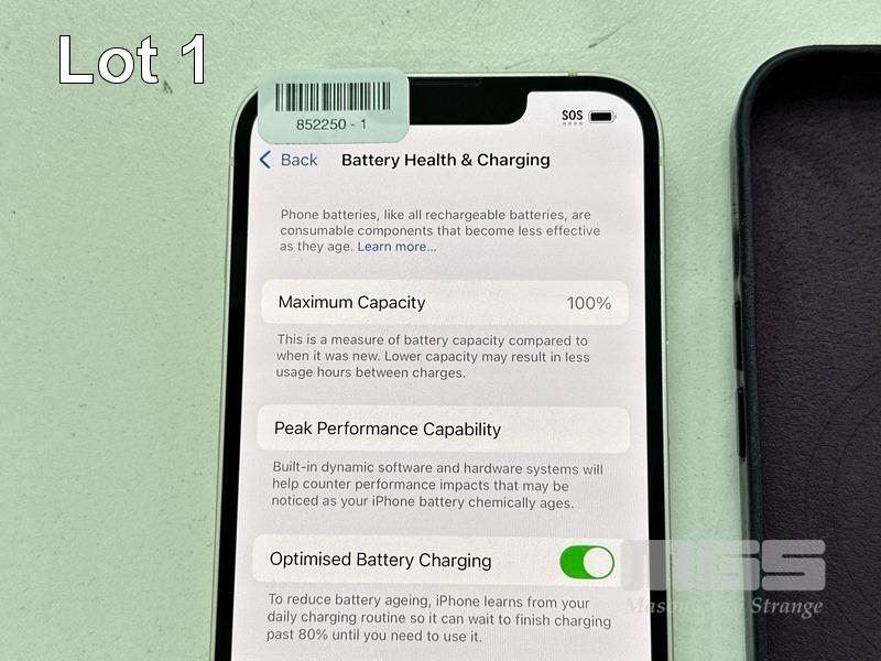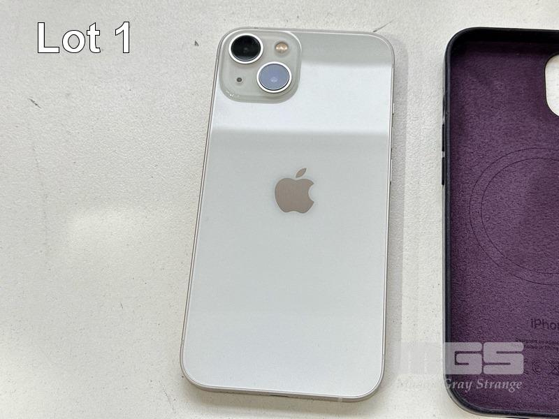 APPLE iPHONE 13, 128GB, STARLIGHT, MODEL MLPG3X/A, BATTERY HEALTH 100% WITH CASE, CHARGER & CABLE S/N:WVKJX5Y0JW