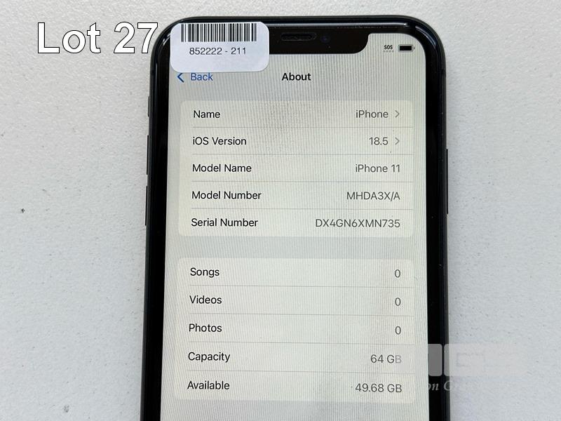 APPLE iPHONE 11, 64GB, MODEL MHDA3X/A, A2221, BLACK, BATTERY HEALTH 86% (NO CABLE, NO CHARGER) S/N:DX4GN6XMN735
