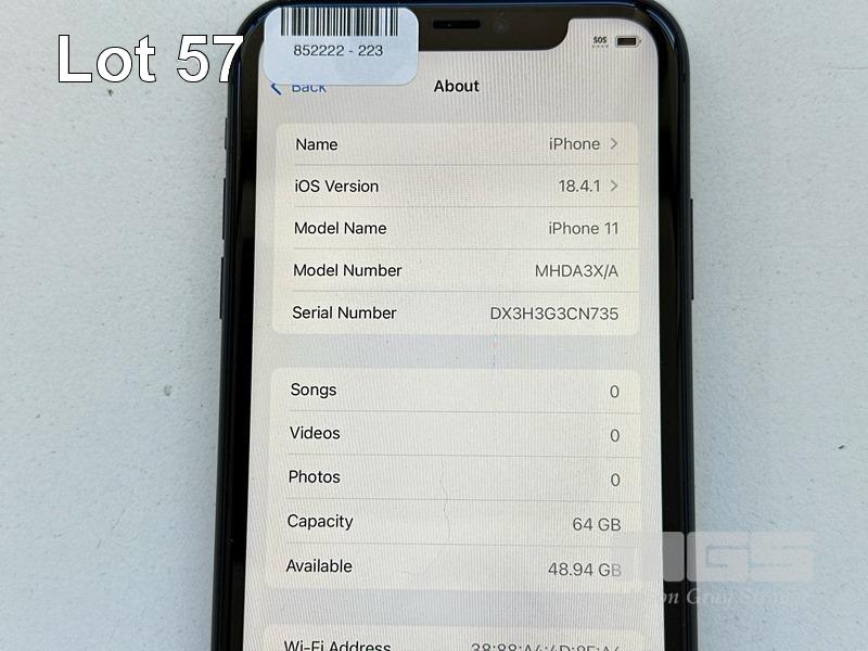 APPLE iPHONE 11, 64GB, MODEL MHDA3X/A, A2221, BLACK, BATTERY HEALTH 83% (NO CABLE, NO CHARGER) S/N:DX3H3G3CN735