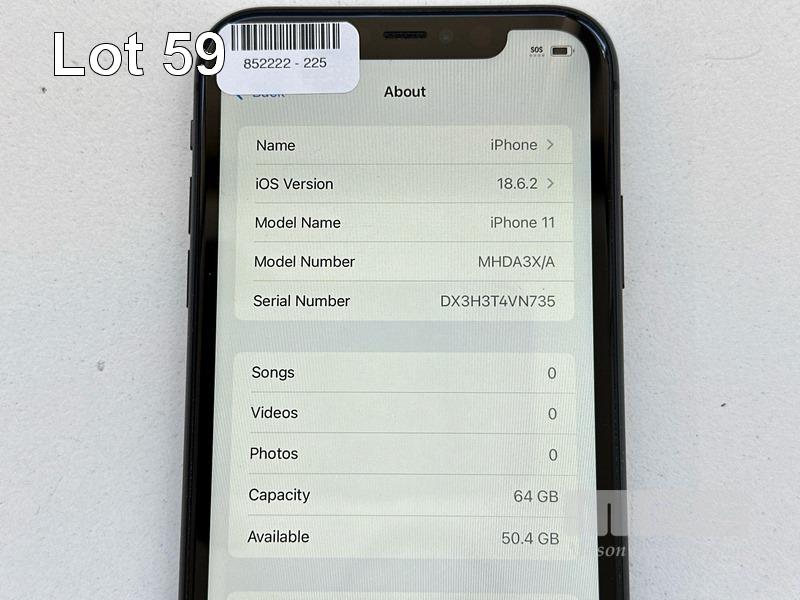 APPLE iPHONE 11, 64GB, MODEL MHDA3X/A, A2221, BLACK, BATTERY HEALTH 83% (NO CABLE, NO CHARGER) S/N:DX3H3T4VN735
