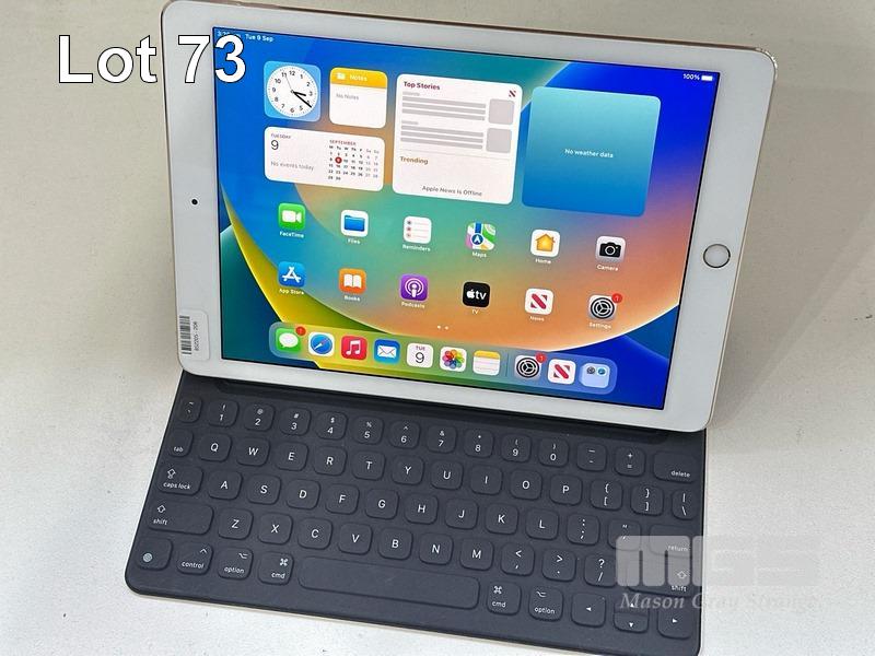 APPLE iPAD PRO, 9.7", 32GB, Wi-Fi, GOLD, MODEL FLMQ2X/A, A1673 WITH APPLE SMART KEYBOARD A1772 (NO CHARGER, NO CABLE) (NOTE: MINOR SCRATCHES ON SCREEN) S/N:F8QW403UH1MD