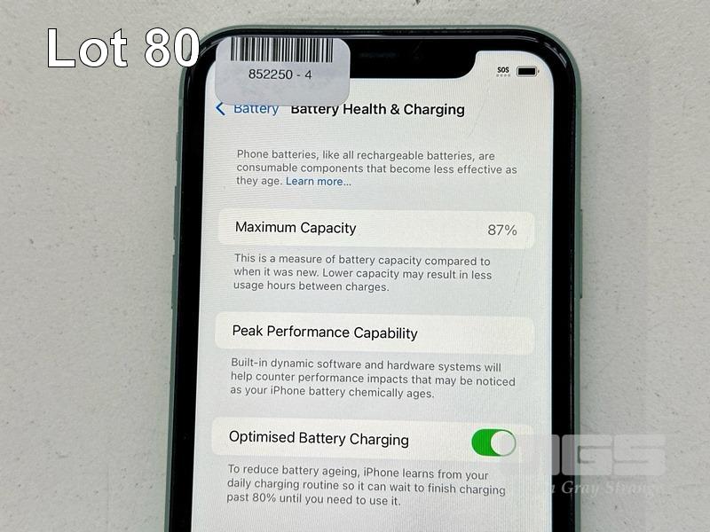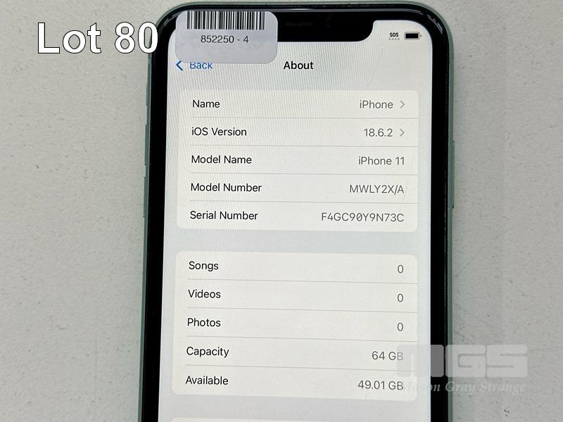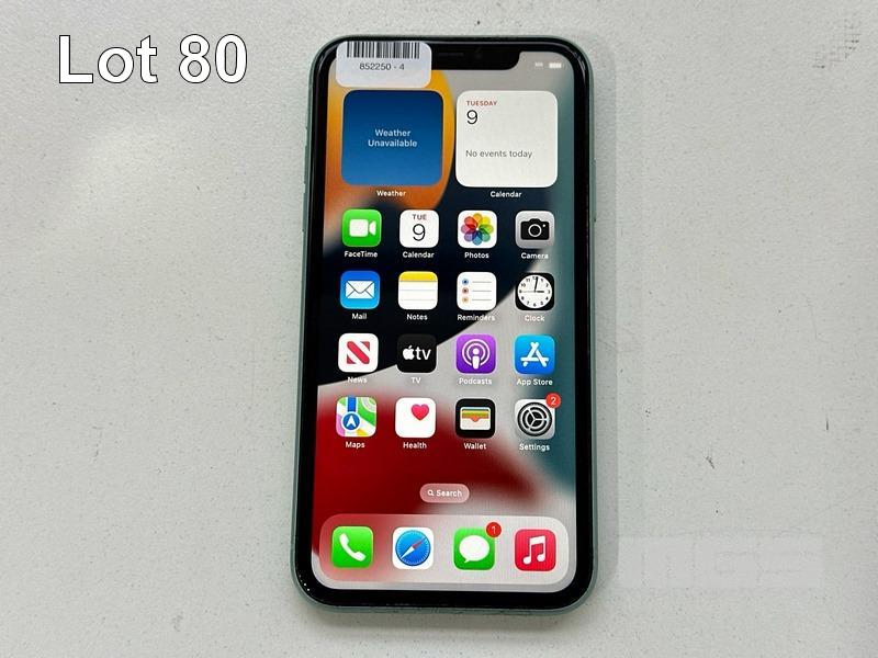APPLE iPHONE 11, 64GB, MODEL MWLY2X/A, A2221, GREEN, BATTERY HEALTH 87% (NO CABLE, NO CHARGER) (NOTE: MINOR SCRATCHES ON SCREEN) S/N:F4GC90Y9N73C