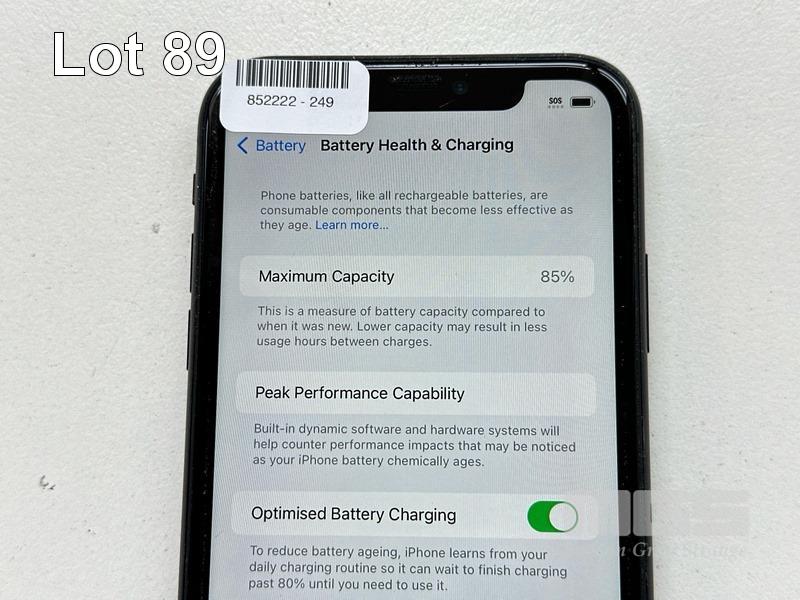 APPLE iPHONE 11, 64GB, MODEL MHDA3X/A, A2221, BLACK, BATTERY HEALTH 85% (NO CABLE, NO CHARGER) (NOTE: MINOR SCRATCHES ON SCREEN) S/N:DX4GN73YN735