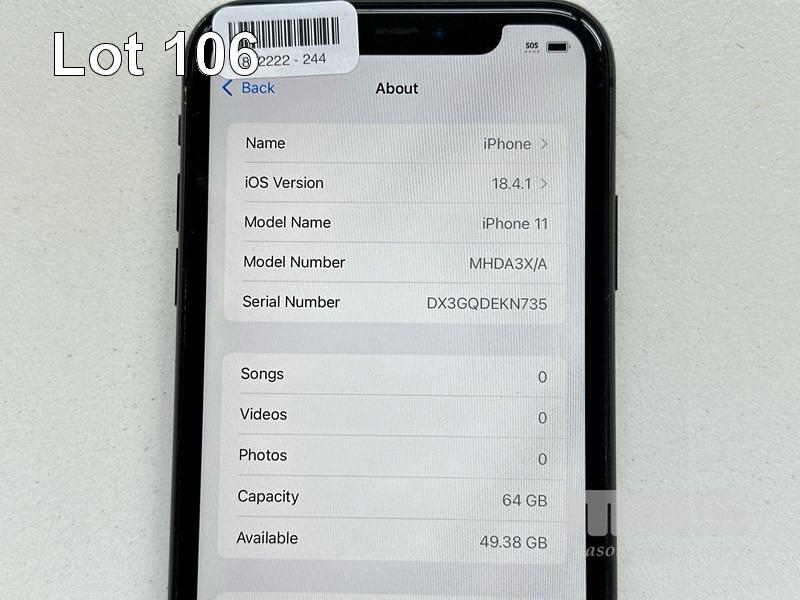 APPLE iPHONE 11, 64GB, MODEL MHDA3X/A, A2221, BLACK, BATTERY HEALTH 88% (NO CABLE, NO CHARGER) (NOTE: SCRATCHES ON SCREEN) S/N:DX3GQDEKN735