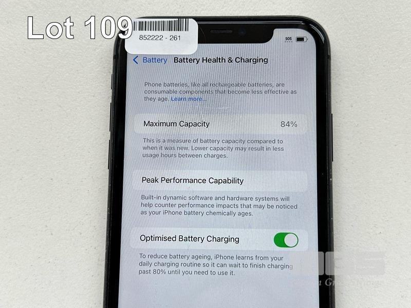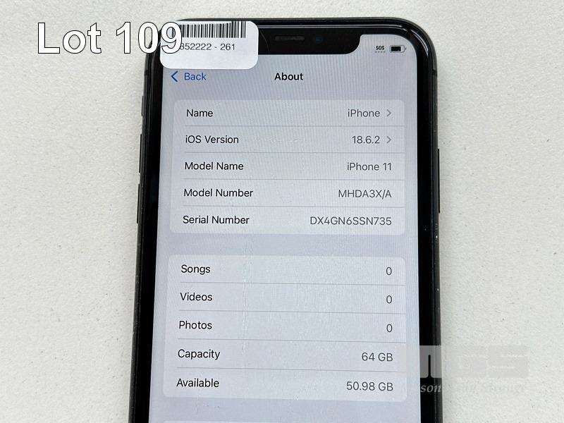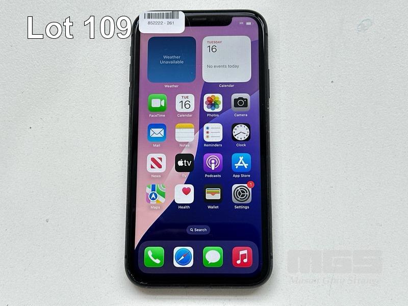 APPLE iPHONE 11, 64GB, MODEL MHDA3X/A, A2221, BLACK, BATTERY HEALTH 84% (NO CABLE, NO CHARGER) (NOTE: SCRATCHES ON SCREEN) S/N:DX4GN6SSN735