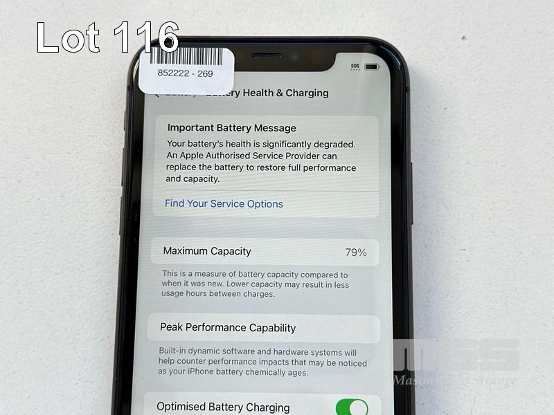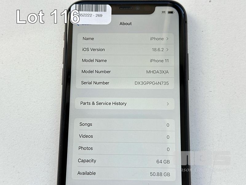 APPLE iPHONE 11, 64GB, MODEL MHDA3X/A, A2221, BLACK, BATTERY HEALTH 79% (NO CABLE, NO CHARGER) (NOTE: BATTERY SERVICE MESSAGE) S/N:DX3GPPG4N735