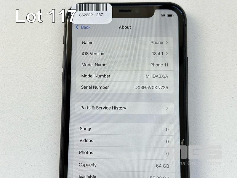 APPLE iPHONE 11, 64GB, MODEL MHDA3X/A, A2221, BLACK, BATTERY HEALTH 79% (NO CABLE, NO CHARGER) (NOTE: MINOR SCRATCH ON SCREEN, BATTERY SERVICE MESSAGE) S/N:DX3H590XN735