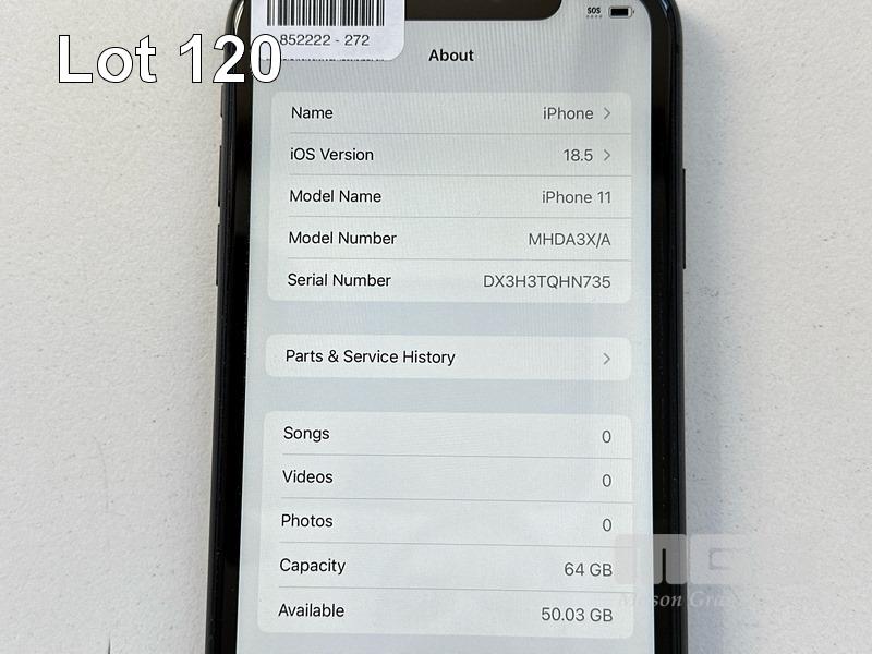 APPLE iPHONE 11, 64GB, MODEL MHDA3X/A, A2221, BLACK, BATTERY HEALTH 77% (NO CABLE, NO CHARGER) (NOTE: BATTERY SERVICE MESSAGE) S/N:DX3H3TQHN735