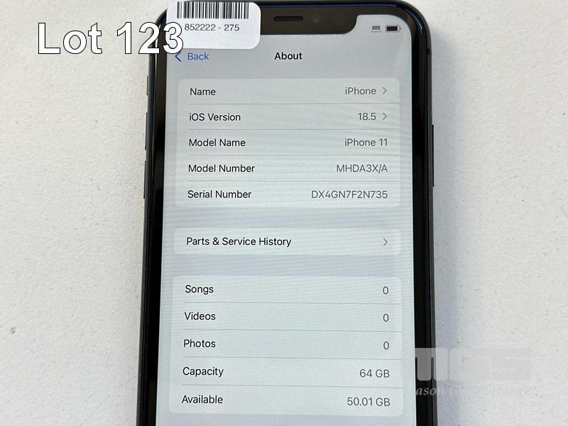 APPLE iPHONE 11, 64GB, MODEL MHDA3X/A, A2221, BLACK, BATTERY HEALTH 75% (NO CABLE, NO CHARGER) (NOTE: BATTERY SERVICE MESSAGE) S/N:DX4GN7F2N735
