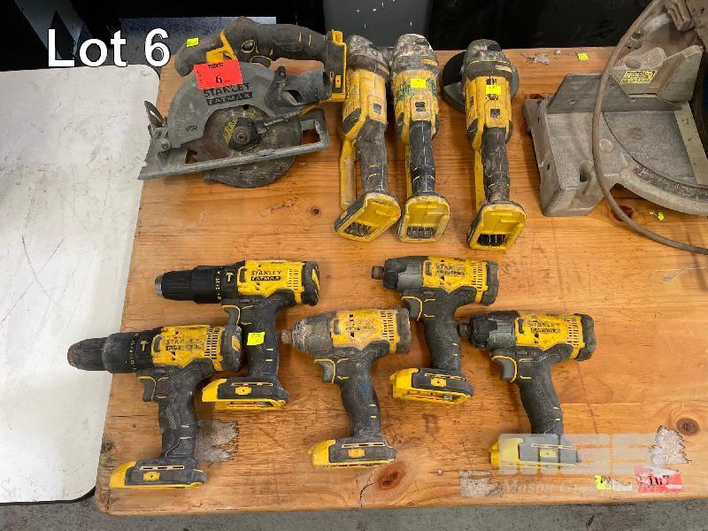 STANLEY POWER TOOLS INCLUDING, CIRCULAR SAW, 165mm, 3 x ANGLE GRINDERS, 2 x DRILLS, 3 x IMPACT DRIVERS, 18V NO BATTERIES OR CHARGERS