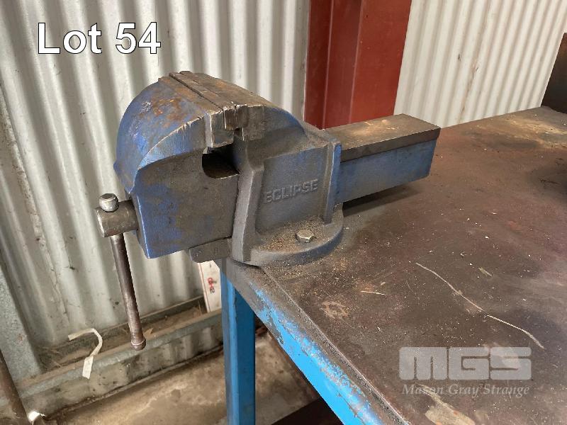 MOBILE WORKBENCH, 4mm STEEL PLATE TOP, 2 TIER, 2000 x 1000mm WITH ECLIPSE VICE MOUNTED
