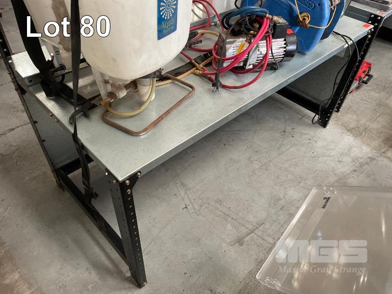 STEEL BENCH, SHARMAN 1710 x 790mm, GALV TOP, WITH TECH SHELF