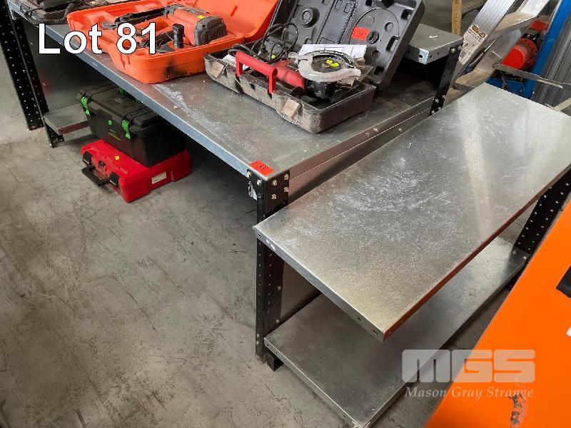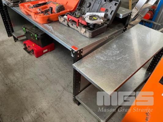 STEEL BENCH, SHARMAN 1710 x 760mm, GALV TOP, WITH TECH SHELF
