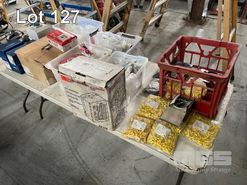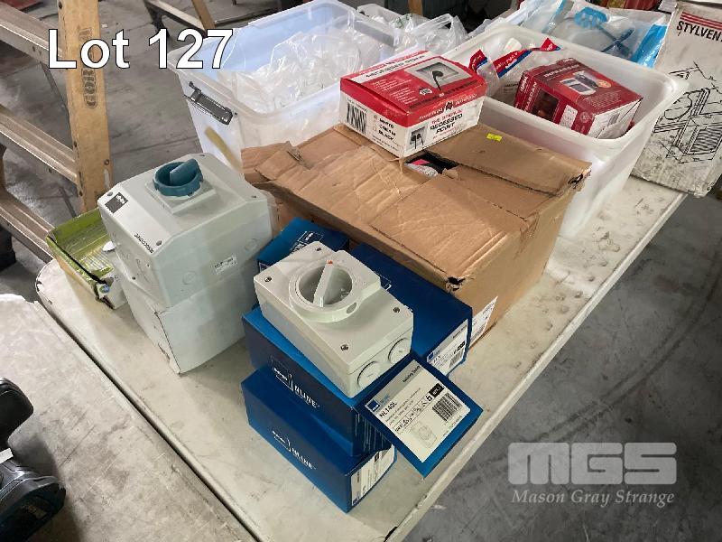 LARGE QUANTITY ELECTRICAL COMPONENTS, TERMINAL LUGS, GLOBES, CONDUIT ELBOWS, ISOLATION SWITCHES CONTENTS OF TABLE