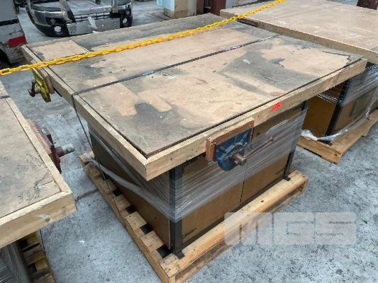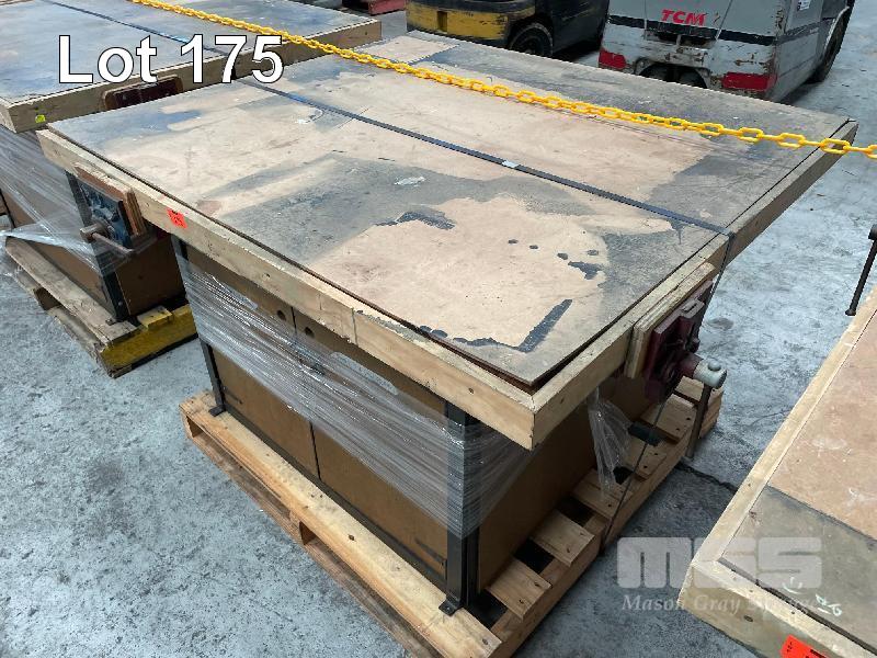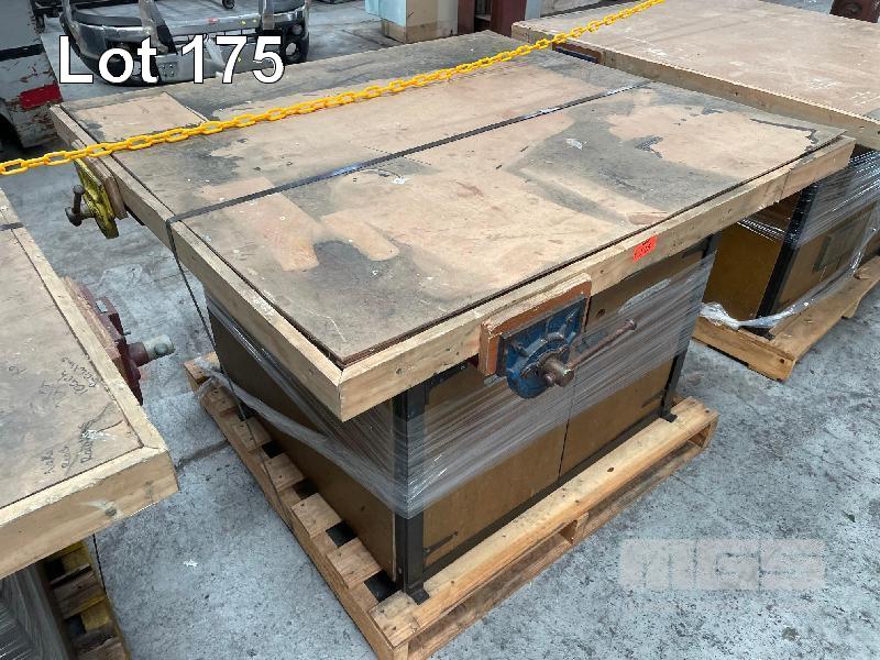 TIMBER WORK BENCH, 1250 x 1400 x 830mm (H), WITH 3 x DAWN VICES, 175mm WITH UNDER BENCH STORAGE