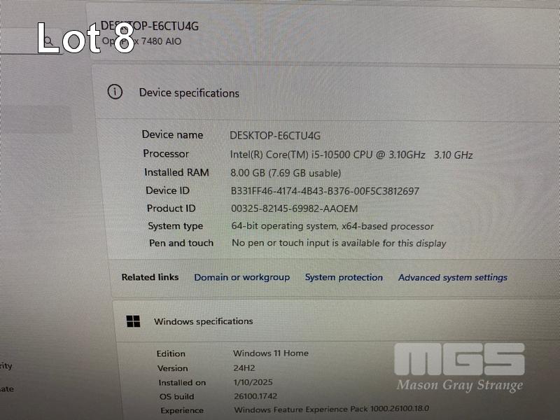 ALL-IN-ONE PC, DELL OPTIPLEX 7480, CORE i5 10500 (10TH GEN) @ 3.1GHz, 8GB DDR4 RAM, 512GB NVMe M.2 SSD, INBUILT 23.8" FHD WIDESCREEN (1920x1080), INTEL HD VIDEO, WEBCAM, 5 x USB, 1 x USB-C, Wi-Fi, BLUETOOTH, WINDOWS 11 HOME INSTALLED, KEYBOARD & MOUSE S/N:7VW54F3