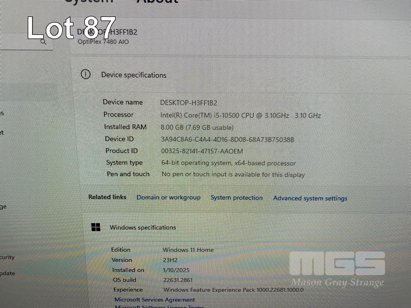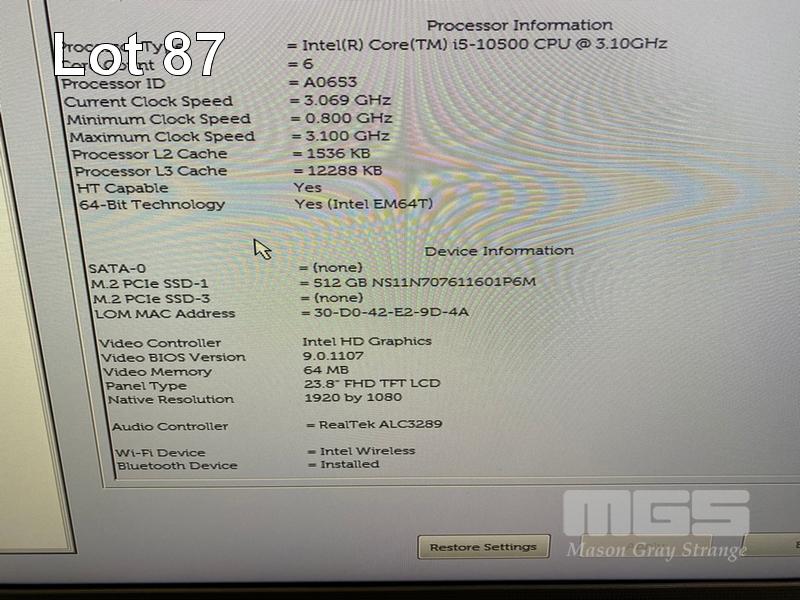 ALL-IN-ONE PC, DELL OPTIPLEX 7480, CORE i5 10500 (10TH GEN) @ 3.1GHz, 8GB DDR4 RAM, 512GB NVMe M.2 SSD, INBUILT 23.8" FHD WIDESCREEN (1920x1080), INTEL HD VIDEO, WEBCAM, 5 x USB, 1 x USB-C, Wi-Fi, BLUETOOTH, WINDOWS 11 HOME INSTALLED, KEYBOARD & MOUSE S/N:9SMWVD3