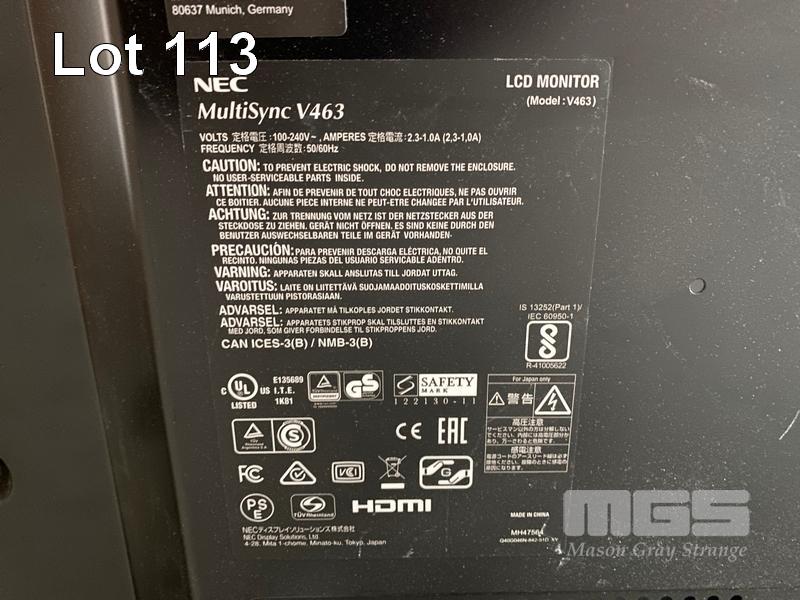 MONITOR, NEC MULTISYNC V463 46" COMMERCIAL LCD DISPLAY (NO REMOTE, NO STAND) S/N:7Y041635NB