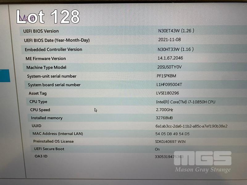 LAPTOP, LENOVO THINKPAD P15 GEN 1 MOBILE WORKSTATION, TYPE 20SU, CORE i7 10850H (10TH GEN) @ 2.7GHz, 32GB DDR4 RAM, 1TB NVMe M.2 SSD, 15.6" WIDESCREEN (1920x1080), 4GB NVIDIA QUADRO T2000 VIDEO, Wi-Fi, BLUETOOTH, WINDOWS 11 PRO INSTALLED & POWER SUPPLY (NOTE: FAULTY USB PORT) S/N:PF1SPKBM